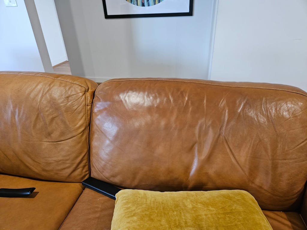 Restoring aniline leathers requires a balancing act. Typically, older aniline sofas display a combination of UV fading, stains, and coatings wear and tear. Our formulations have been developed to deliver a balance on all priorities: