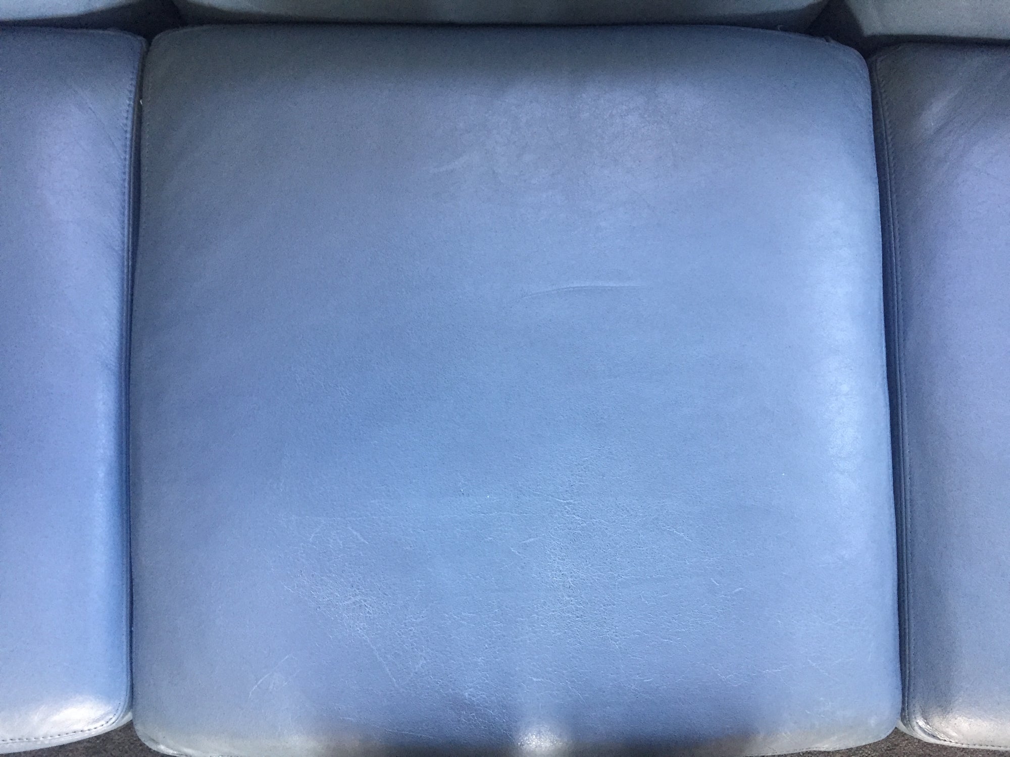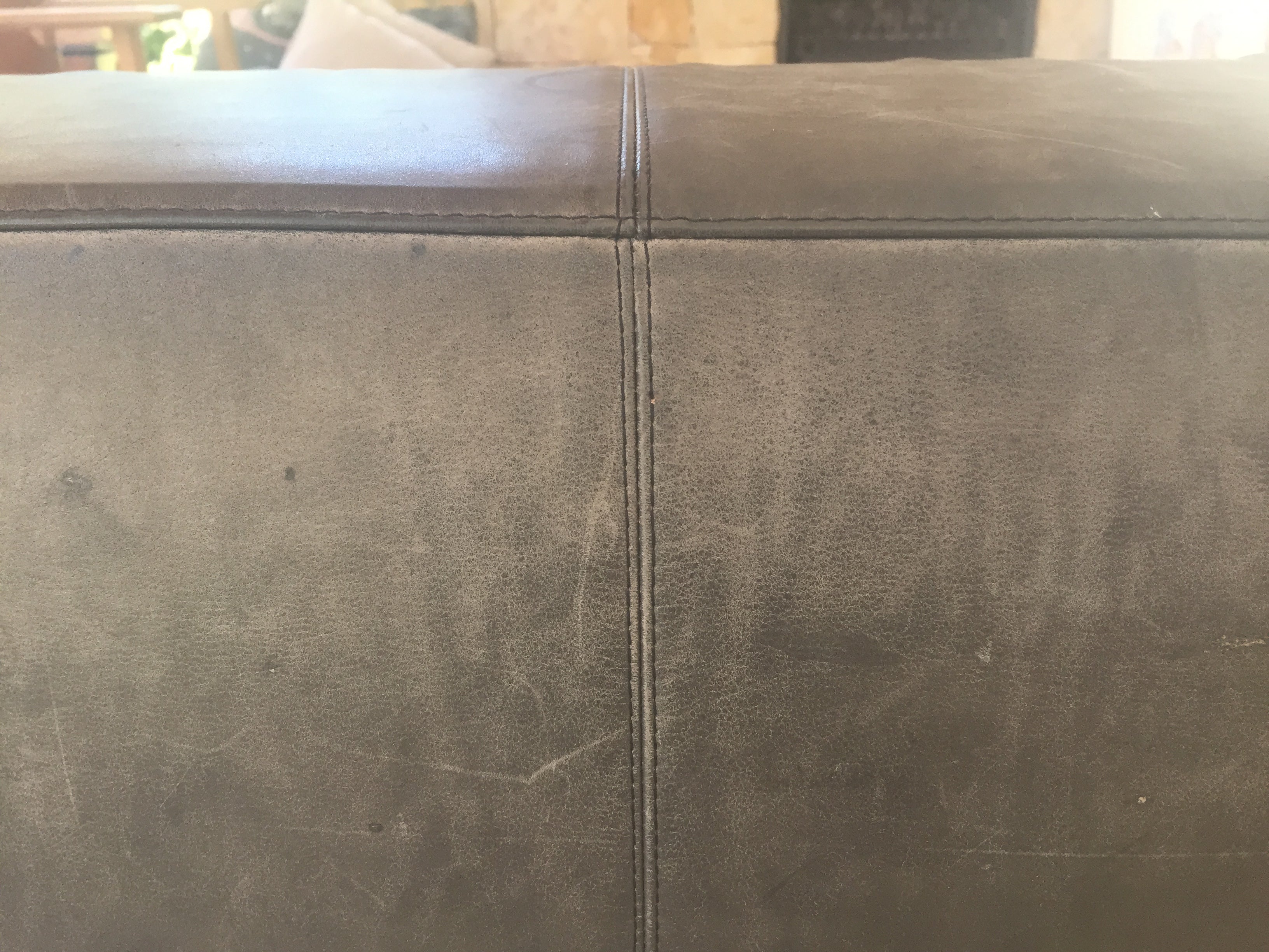 Pigmented/coated leathers are practicle and appealing. With normal use over the years, they can develop scuffs, colour wear, and marks. Life happens!