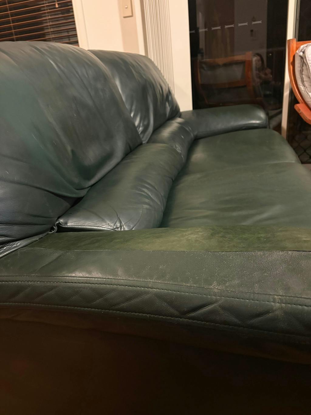 Pigmented/coated leathers are practicle and appealing. With normal use over the years, they can develop scuffs, colour wear, and marks. Life happens!